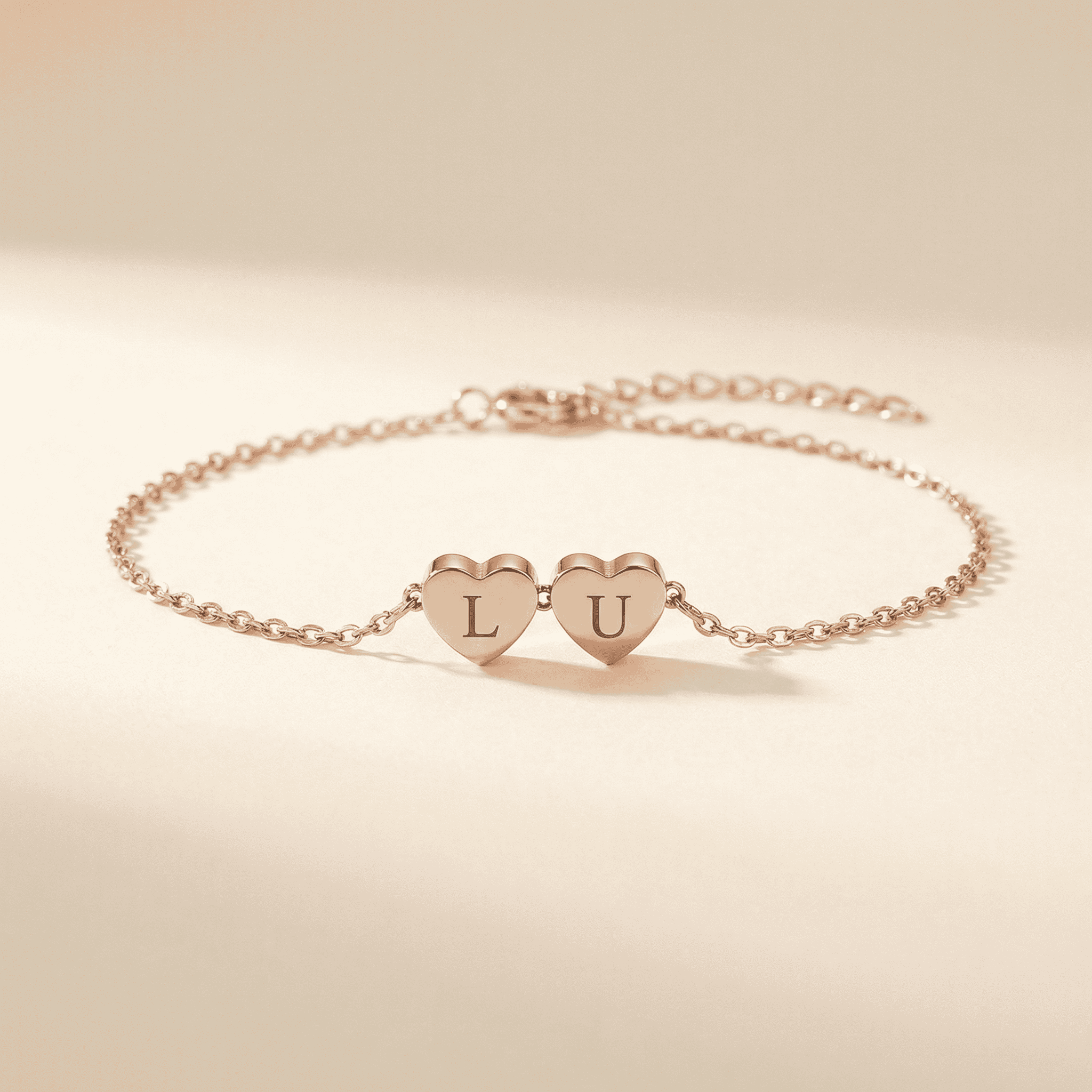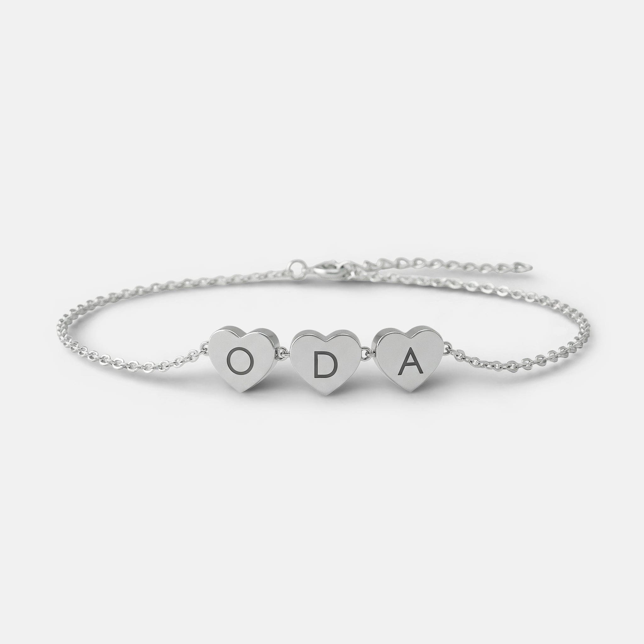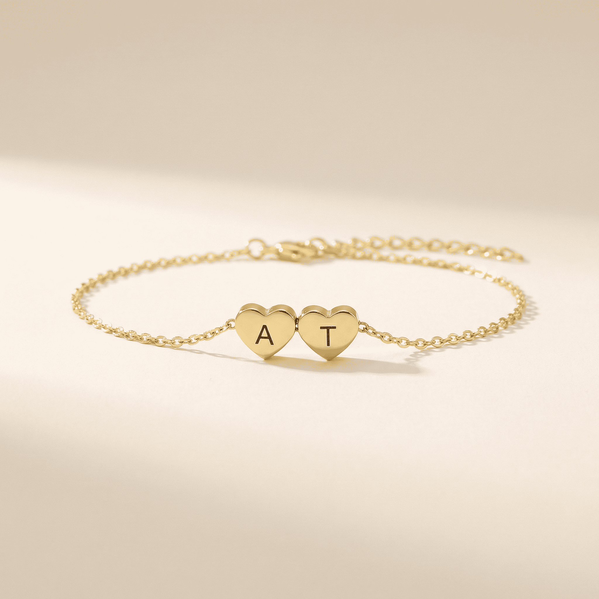 Tento jemný náramek zdobí drobné srdíčkové přívěsky s vygravírovanými iniciálami vašich milovaných. Ať už jde o děti, partnera nebo nejlepšího přítele – každá iniciála dodá osobní dotek nadčasovému minimalistickému designu, který nebudete chtít nikdy sundat.