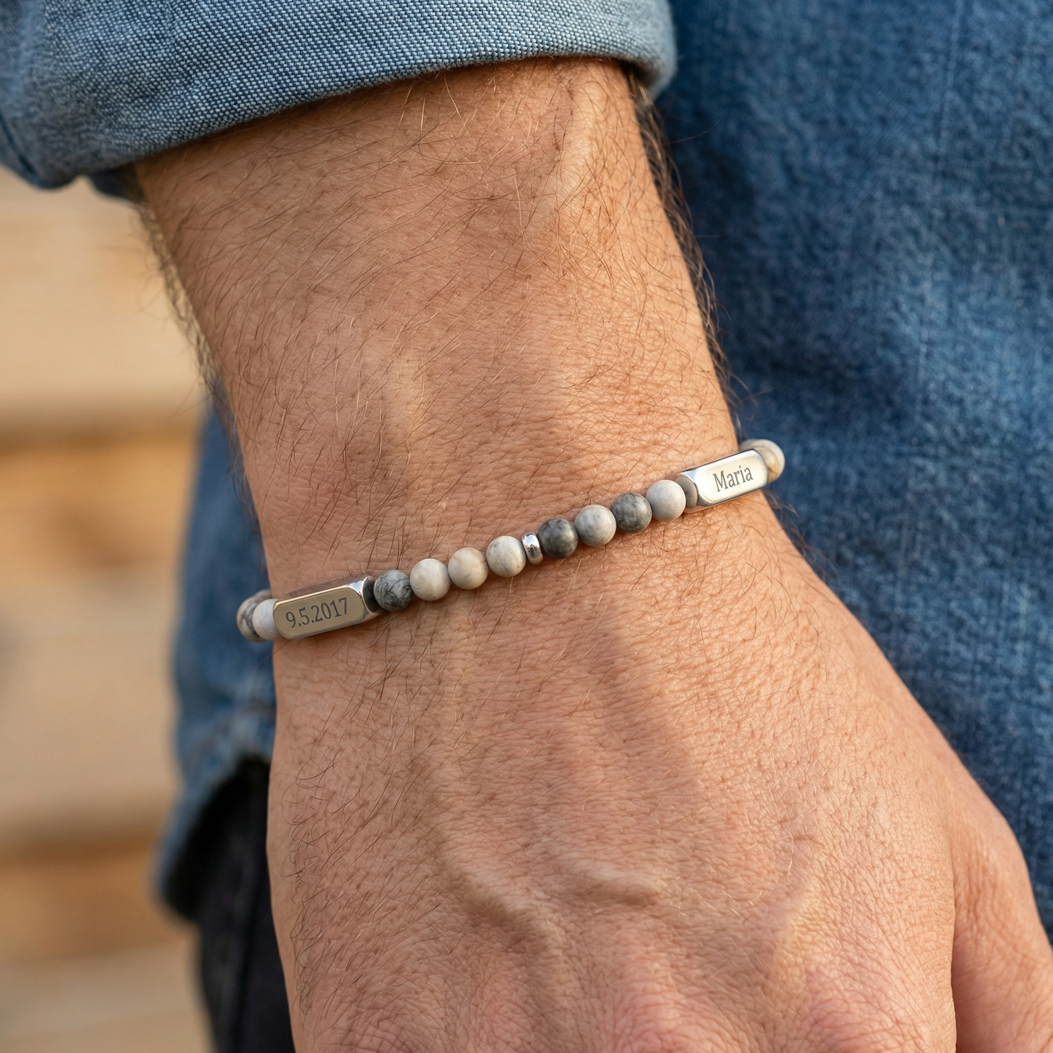 Izrađena od izdržljivih materijala i ugravirana s onim što najviše znači – ova narukvica nije samo modni dodatak. Ona je svakodnevna poveznica s onima koji znače sve.