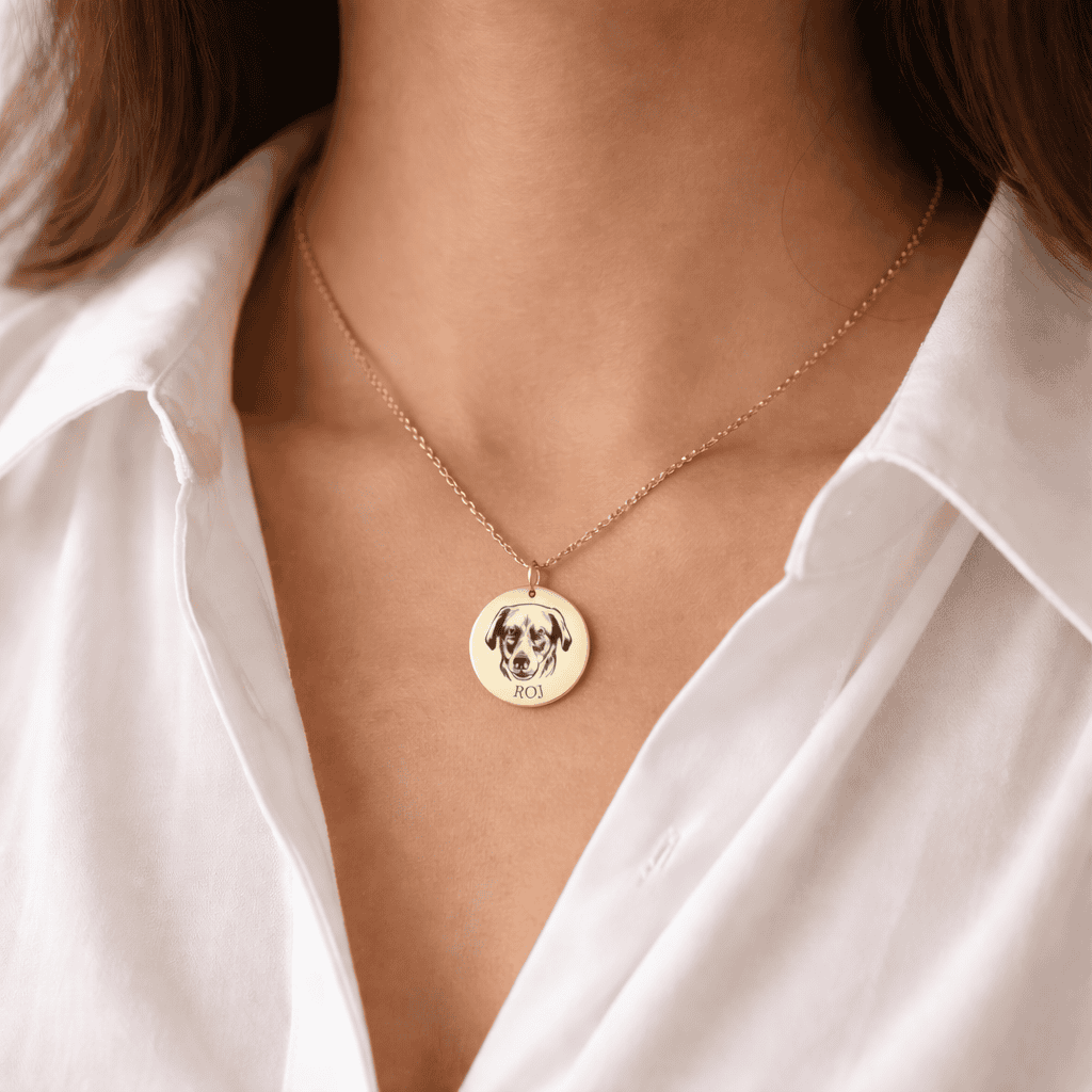 Pārvērtiet sava mājdzīvnieka fotoattēlu par mūžīgu rotaslietu. Šajā personalizētajā kaklarotā ir detalizēts jūsu mīļotā biedra gravējums kopā ar mīluļa vārdu vai īsu ziņu. Izgatavota no ūdensizturīga nerūsējošā tērauda un piegādāta skaistā dāvanu kastītē — tā ir ideāla piemiņas lieta ikvienam dzīvnieku mīļotājam.